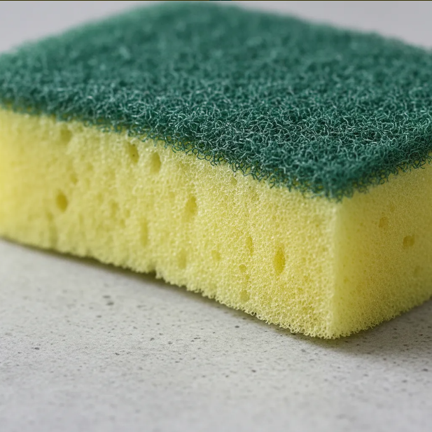 Molhar a bucha ou esponja com um pouco de água, a ponto de gerar espuma